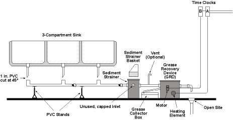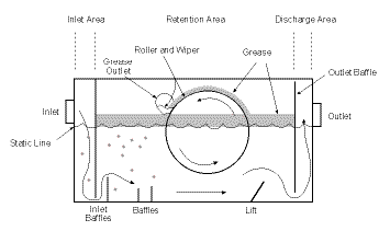 GRD, while the grease, which is floating on top of the water, is kept out of